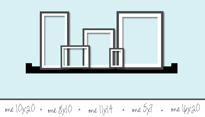 Having trouble deciding what to order? Hopefully this will help! Here are some wall layout ideas that might help you narrow down your selection and get those pictures out of the computer and on to your walls!